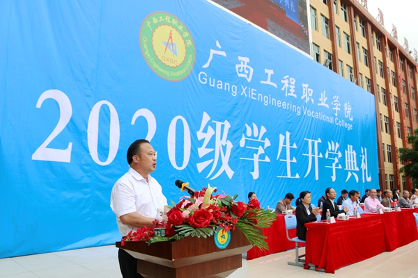 下午3時整,在慷慨激昂的國歌奏唱之后,學(xué)校董事長、紀(jì)委書記李益宣布廣西工程職業(yè)學(xué)院2020級學(xué)生開學(xué)典禮正式開始!