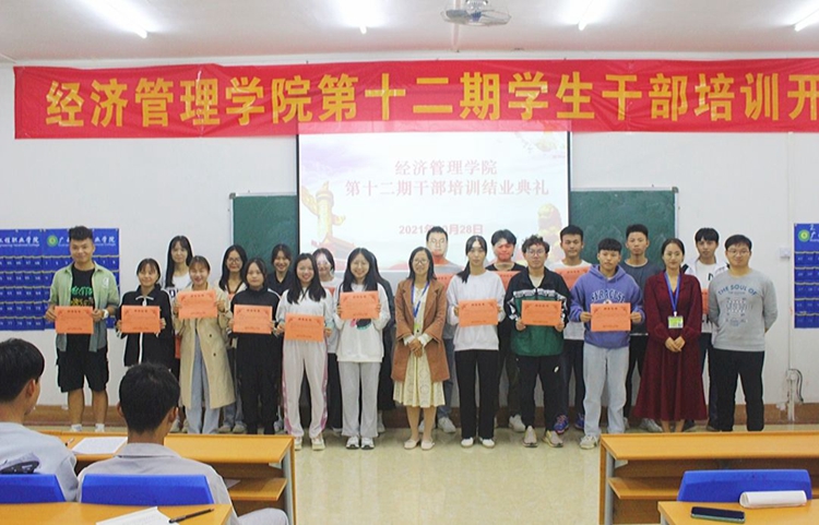 10月28日,第十二期學(xué)生干部培訓(xùn)班學(xué)習(xí)圓滿結(jié)束。學(xué)院領(lǐng)導(dǎo)、老師為全體學(xué)生干部頒發(fā)結(jié)業(yè)證書(shū)。