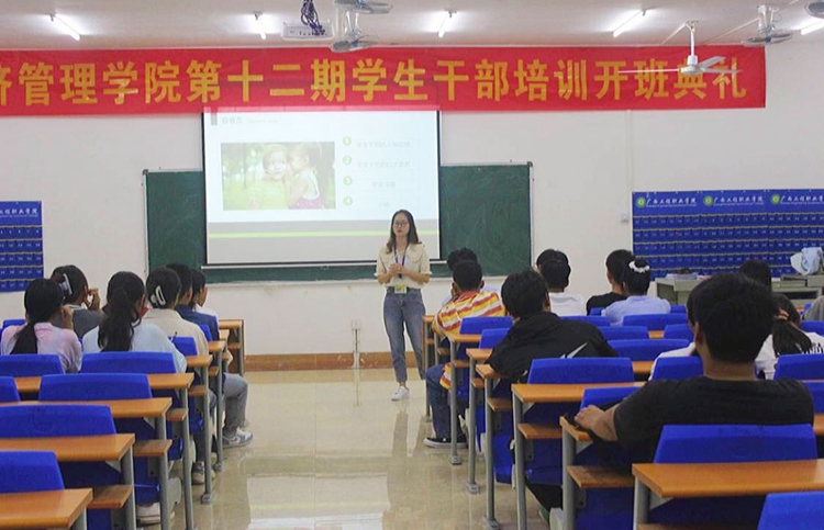 開(kāi)班典禮結(jié)束,經(jīng)濟(jì)管理學(xué)院副院長(zhǎng)覃清香為全體學(xué)生干部作了題為《如何做一名優(yōu)秀的學(xué)生干部》的開(kāi)班第一講。