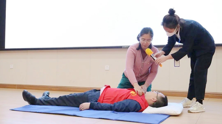 平果市人民醫(yī)院醫(yī)院副院長零達(dá)格作心肺復(fù)蘇專題培訓(xùn)。零達(dá)格副院長以通俗易懂的語言、生動形象的演示,詳細(xì)講授了心肺復(fù)蘇的理論知識、流程、步驟以及注意事項,希望同學(xué)們掌握急救技能,牢記“時間就是生命”,能夠在第一時間挽救更多生命。醫(yī)護(hù)人員還現(xiàn)場演練心肺復(fù)蘇、人工呼吸等技能的操作規(guī)程和一般要領(lǐng)。