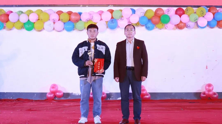 彭高彬副校長(zhǎng)為榮獲冠軍的索朗倫珠同學(xué)頒獎(jiǎng)