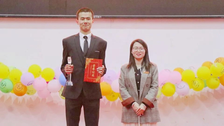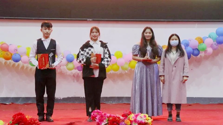 黃秋霞校長(zhǎng)助理為榮獲一等獎(jiǎng)的選手頒獎(jiǎng)