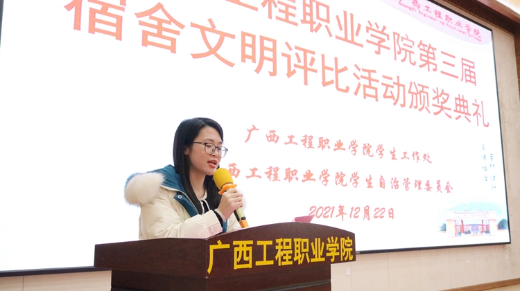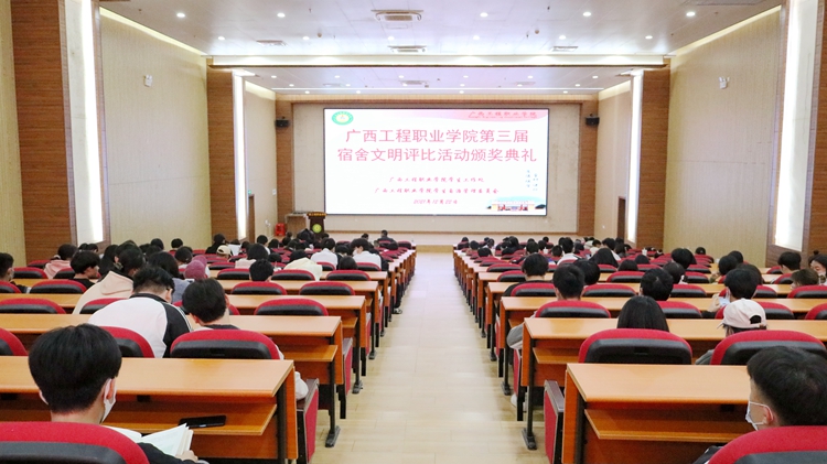 2021年12月22日晚,第三屆宿舍文明評比活動頒獎典禮在圖文信息樓一樓學術報告廳舉行,學校校長助理黃秋霞、覃清香,學生工作處副處長盧保日,各二級學院(部)負責人、分團委書記等出席典禮,各二級學院輔導員以及學生代表參加頒獎典禮。