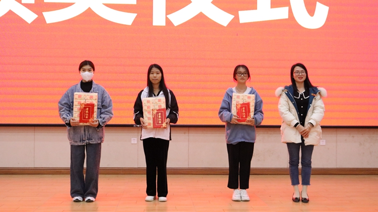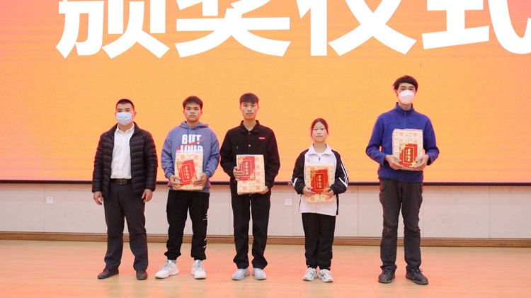 校長助理覃清香為榮獲二等獎的文明宿舍代表頒獎