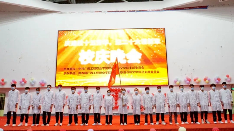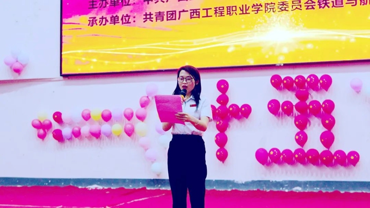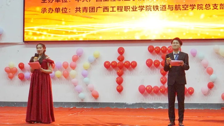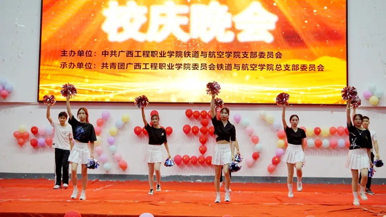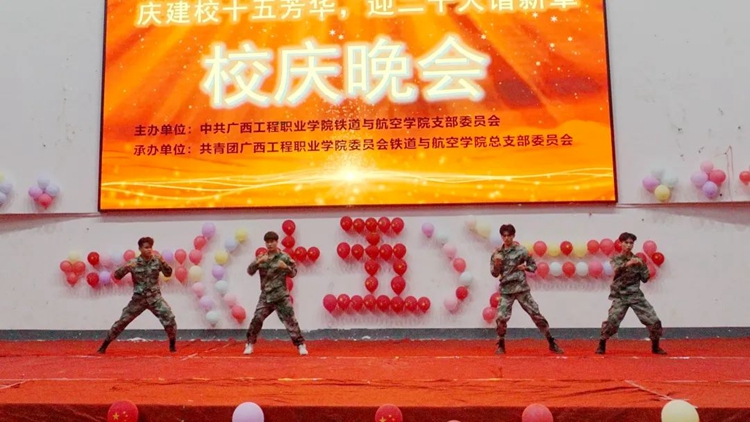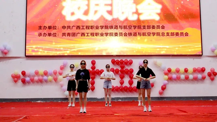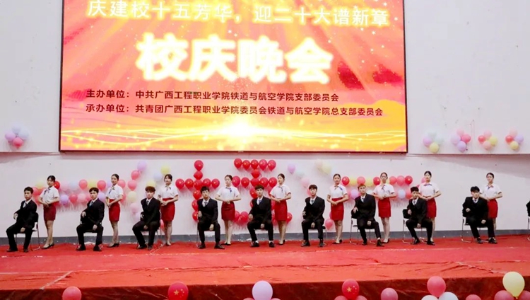 2022年4月14日晚,鐵道與航空學(xué)院在體育館舉行“慶建校十五芳華,迎二十大譜新章”文藝晚會,學(xué)校黨委副書記黃秋霞、校團(tuán)委書記梁鳳琴,鐵道與航空學(xué)院黨支部書記、院長覃鳳姣,鐵道與航空學(xué)院黨支部組織委員謝錫潔、分團(tuán)委書記謝小玲、辦公室主任黃晶晶,汽車與機(jī)電學(xué)院分團(tuán)委書記楊小櫻、土木工程學(xué)院分團(tuán)委書記陳春任出席晚會,各學(xué)生會和社團(tuán)代表參加了此次晚會。