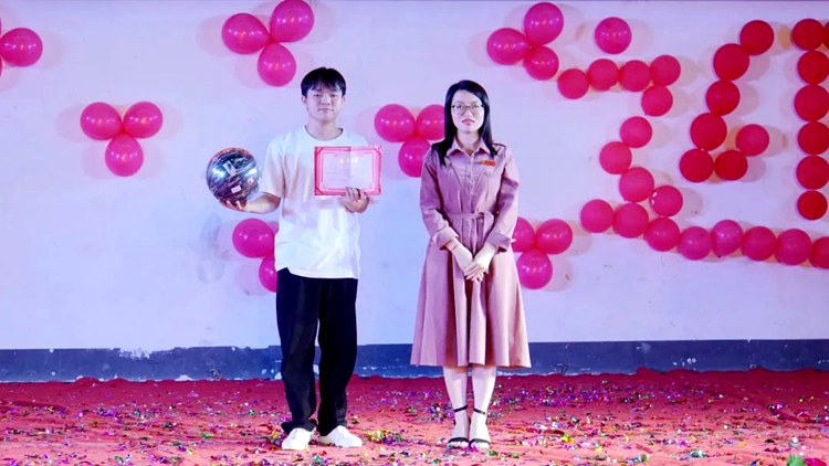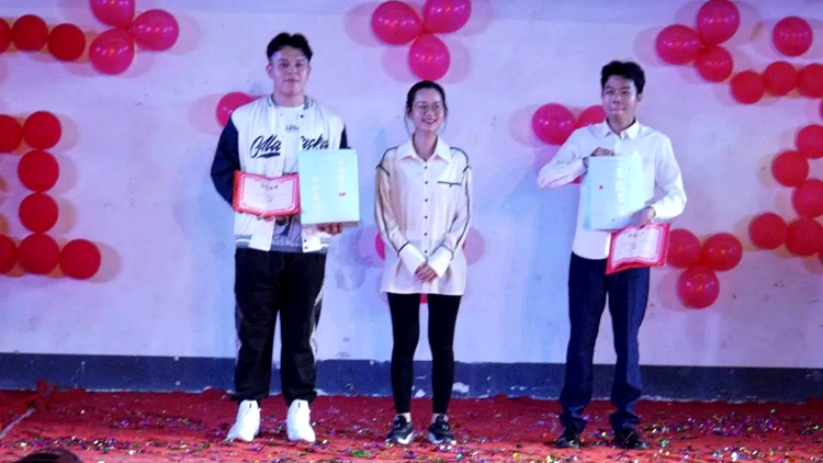 校團委書記梁鳳琴為獲得三等獎選手頒獎