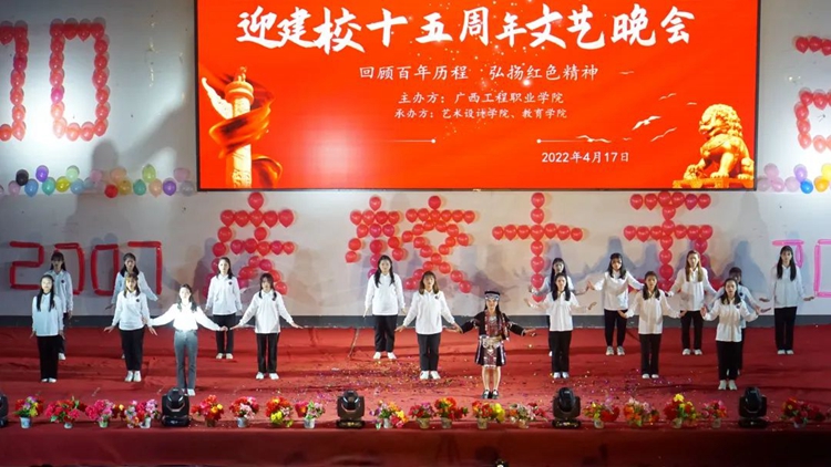 2022年4月17日晚,藝術(shù)設(shè)計(jì)學(xué)院、教育學(xué)院在體育館聯(lián)合舉辦“回顧百年歷程,弘揚(yáng)紅色精神”迎建校十五周年文藝晚會(huì),獻(xiàn)禮建團(tuán)100周年,喜迎黨的二十大召開(kāi)。