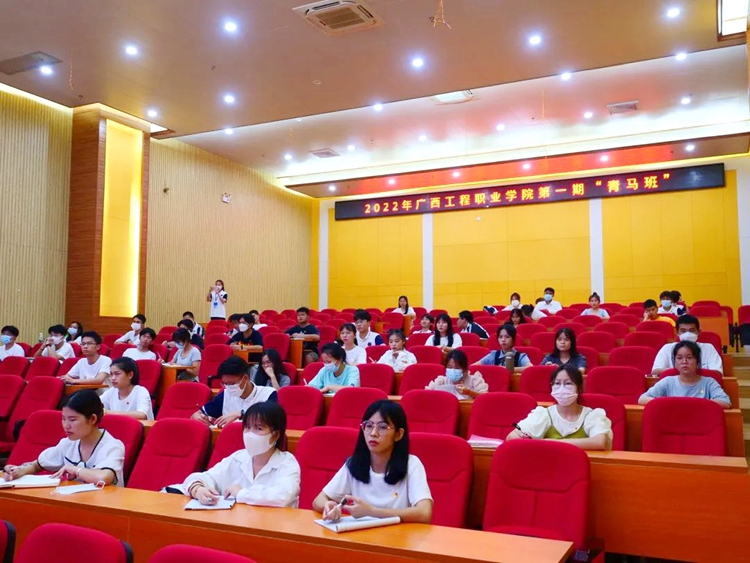 為深入學(xué)習(xí)貫徹習(xí)近平總書記關(guān)于青年工作的重要思想,引領(lǐng)青年學(xué)生增強(qiáng)“四個意識”、堅定“四個自信”、做到“兩個維護(hù)”,引領(lǐng)青馬學(xué)員更堅定不移聽黨話、矢志不渝跟黨走,追尋信仰之光,勇?lián)啻菏姑?,以實際行動迎接黨的二十大勝利召開。6月13日,廣西工程職業(yè)學(xué)院2022年第一期“青馬班”第一課在圖文信息大樓報告廳正式開課。此次專題課由校團(tuán)委書記梁鳳琴主講,第一期“青馬班”學(xué)員參加了培訓(xùn)。