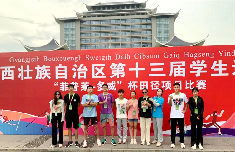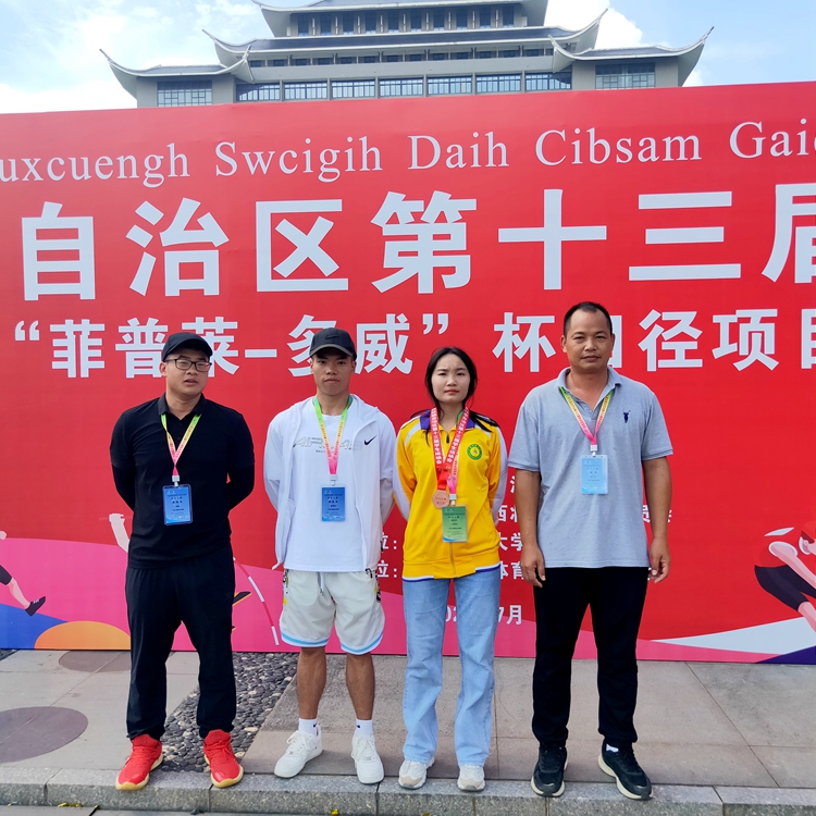 據(jù)悉,廣西壯族自治區(qū)第十三屆學(xué)生運動會田徑比賽7月10日—14日在廣西民族大學(xué)西校區(qū)舉行,廣西工程職業(yè)學(xué)院田徑代表隊在蒙永福、陸路和蔡富榮老師的帶領(lǐng)下,選派了9名運動員參賽三級跳遠(yuǎn)、跳高、鉛球、100米、200米、800米、1500米和5000米等比賽項目。