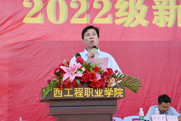 紀(jì)委書記、副校長彭高彬帶領(lǐng)全體新生進(jìn)行入學(xué)宣誓。全體新生以青春之名,宣誓表決心:我是廣西工程職業(yè)學(xué)院的學(xué)生,我將胸懷祖國,遵紀(jì)守法,嚴(yán)守校紀(jì)校規(guī),尊師愛校,勤奮好學(xué),團(tuán)結(jié)友愛;明德修身,誠以待人,毅以處事;謹(jǐn)記“厚德博學(xué),至材健行”校訓(xùn),弘揚(yáng)“熔煉工匠精神,鑄就一流技藝”的學(xué)校精神,緊跟時(shí)代步伐,勇?lián)鷼v史使命,立志成才,報(bào)效祖國。他們以鏗鏘有力的誓言奏響新時(shí)代青年的自強(qiáng)不息、學(xué)習(xí)向未來的最強(qiáng)音。