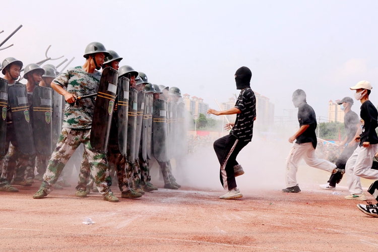 2022級新生軍訓(xùn)匯報(bào)表演正式開始。2022級全體新生各方隊(duì)依次進(jìn)行分列式、擺字、手語操、拳術(shù)、應(yīng)急棍、匕首操、戰(zhàn)術(shù)(防爆隊(duì)形)表演。他們軍姿標(biāo)準(zhǔn)、志氣高昂、口號嘹亮、動(dòng)作干凈利落、精神抖擻、意氣風(fēng)發(fā),英姿颯爽,充分展示了新時(shí)代青年學(xué)生青春昂揚(yáng)、英武豪邁的精神風(fēng)貌。匯報(bào)表演在老師、同學(xué)們的陣陣掌聲和喝彩聲中圓滿結(jié)束。