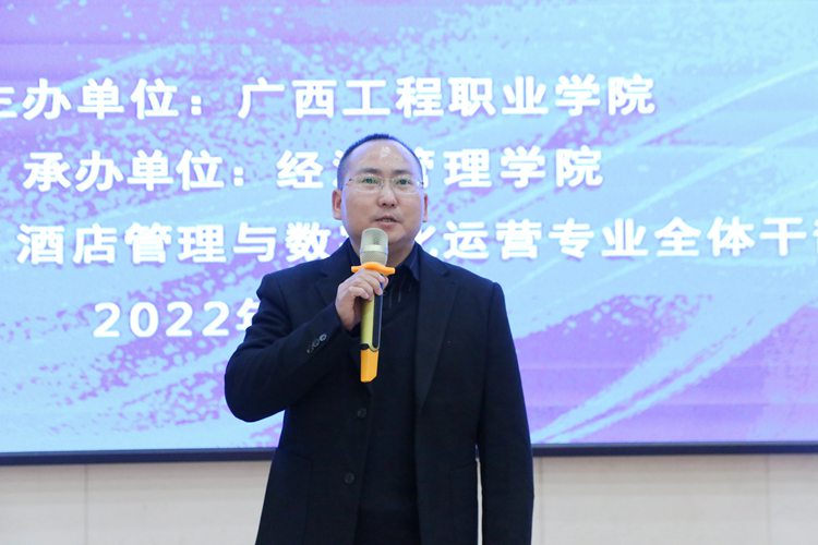 紀(jì)委書記、副校長(zhǎng)彭高彬宣布經(jīng)濟(jì)管理學(xué)院2022年第一屆“模擬現(xiàn)場(chǎng)導(dǎo)游大賽”正式開始