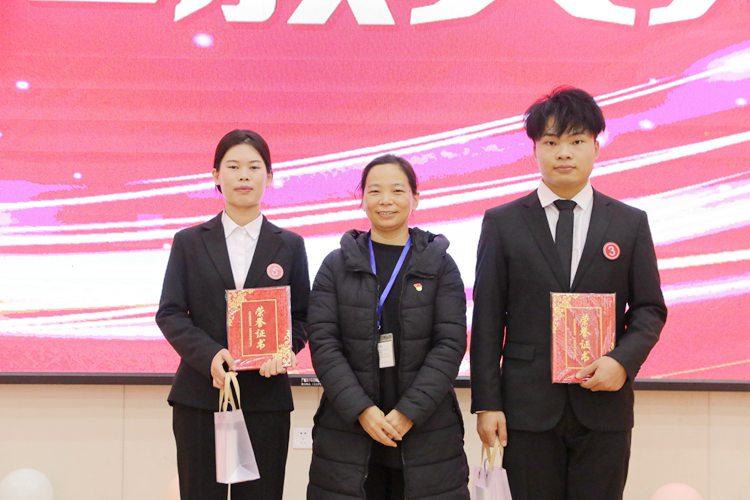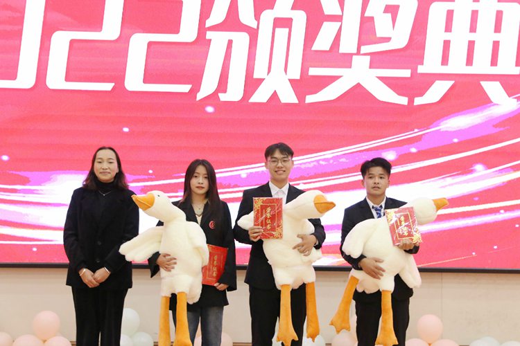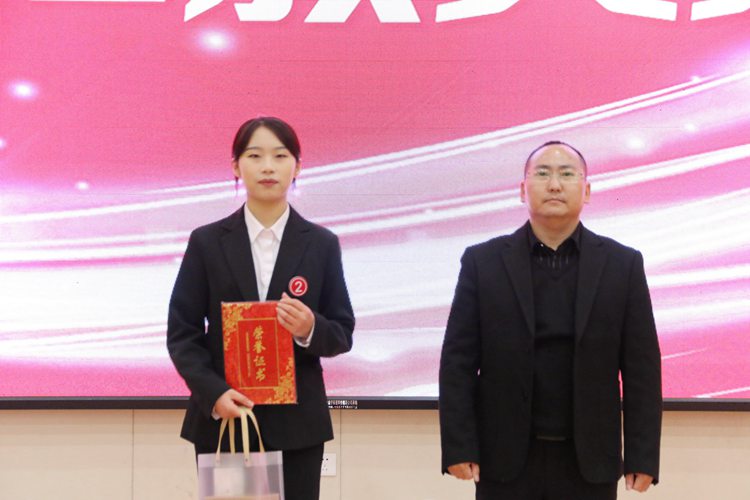 經(jīng)管學(xué)院黨支部書記、院長(zhǎng)龐英連為榮獲二等獎(jiǎng)的選手頒獎(jiǎng)