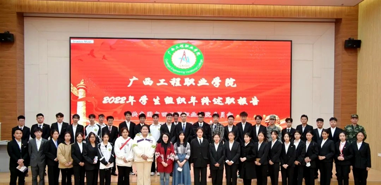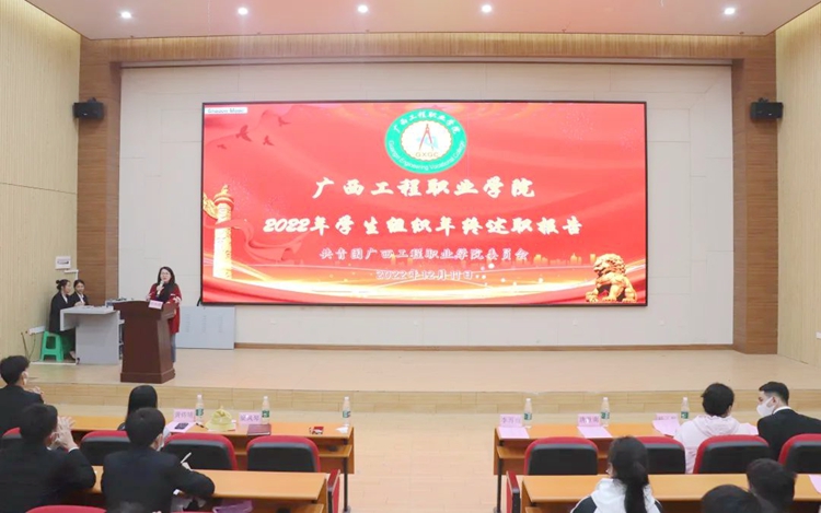 為進(jìn)一步加強(qiáng)學(xué)校學(xué)生組織建設(shè),規(guī)范學(xué)生組織日常運(yùn)行管理情況,增強(qiáng)學(xué)生組織負(fù)責(zé)人的自我教育、自我管理、自我服務(wù)、自我監(jiān)督的意識(shí),提高學(xué)生干部履職能力,2022年12月11日,廣西工程職業(yè)學(xué)院開(kāi)展學(xué)生組織年終述職報(bào)告大會(huì)。學(xué)校黨委副書(shū)記黃秋霞、學(xué)校團(tuán)委書(shū)記梁鳳琴,學(xué)校團(tuán)委老師黃詩(shī)晴、楊子懿以及各學(xué)生組織負(fù)責(zé)人參加本次會(huì)議。會(huì)議由社聯(lián)主席團(tuán)程陽(yáng)柳主持。