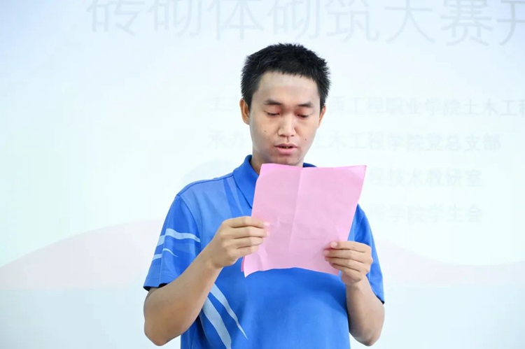 龍群良老師宣讀磚砌體砌筑技能大賽比賽規(guī)則