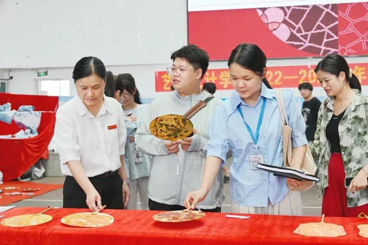 學(xué)校校長(zhǎng)助理梁善雅和藝術(shù)設(shè)計(jì)學(xué)院的老師們到現(xiàn)場(chǎng)參觀同學(xué)們的作品,并對(duì)同學(xué)們的設(shè)計(jì)作品贊不絕口,充分肯定了同學(xué)們的勤奮學(xué)習(xí)和辛苦付出,鼓勵(lì)同學(xué)們?cè)俳釉賲?,?chuàng)作出更多更優(yōu)秀的作品。