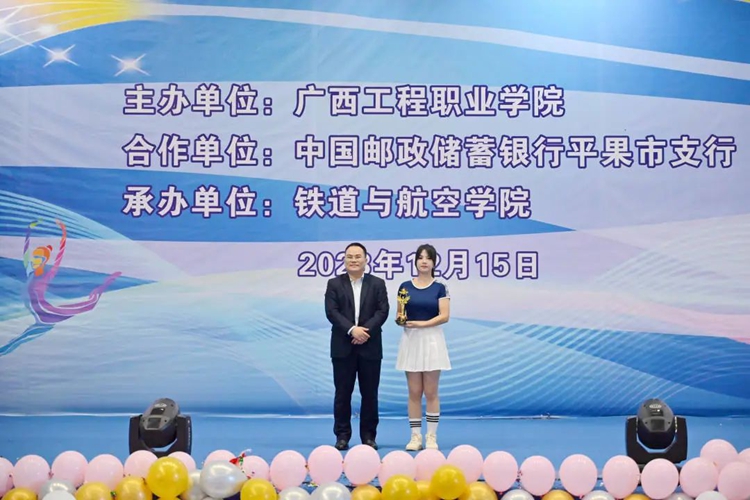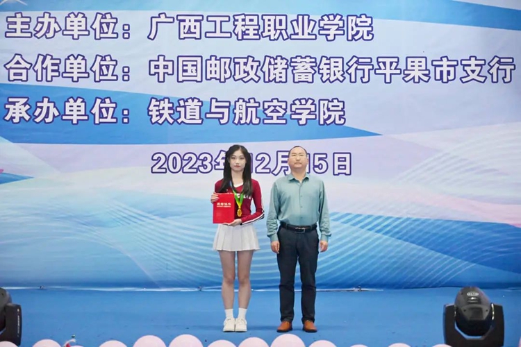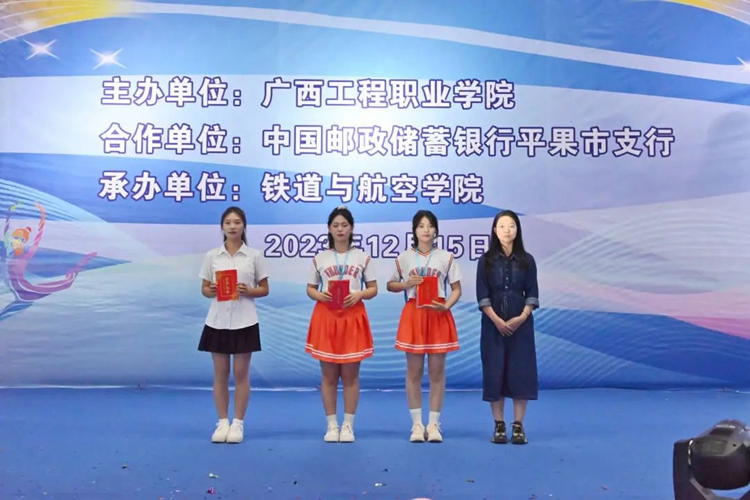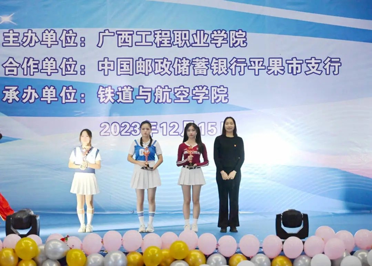 學(xué)校紀(jì)委書記、副校長彭高彬,中國郵政儲(chǔ)蓄銀行平果市支行行長羅顯勇,中國銀行平果市支行行長馬忺翊,廣西平果順全隆建材有限公司第二分公司總經(jīng)理李宇,鐵道與航空學(xué)院黨支部書記、副院長廖嬌,鐵道與航空學(xué)院黨支部副書記宋蓉、辦公室主任黃晶晶、分團(tuán)委書記謝小玲,中國郵政儲(chǔ)蓄銀行平果市支行客戶經(jīng)理呂玲、潘文靜等出席比賽現(xiàn)場,學(xué)院全體師生到場觀看比賽。