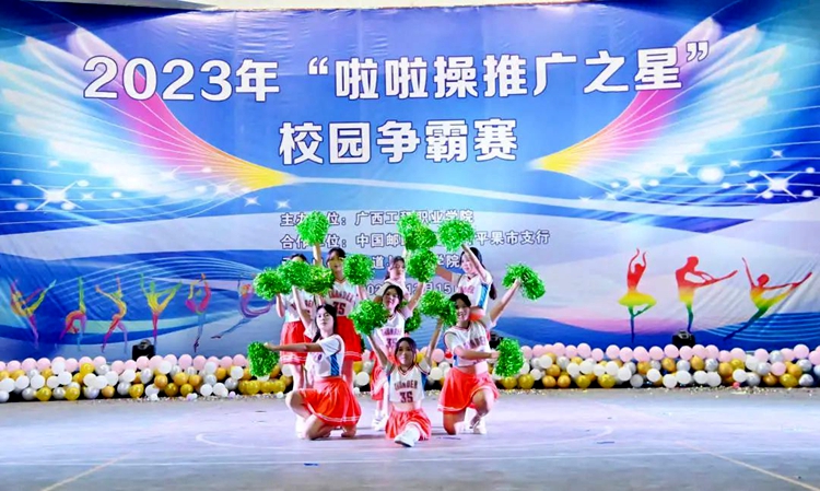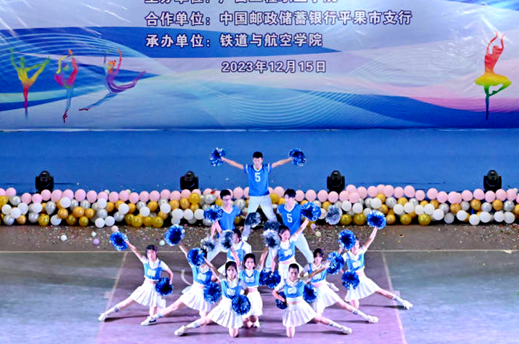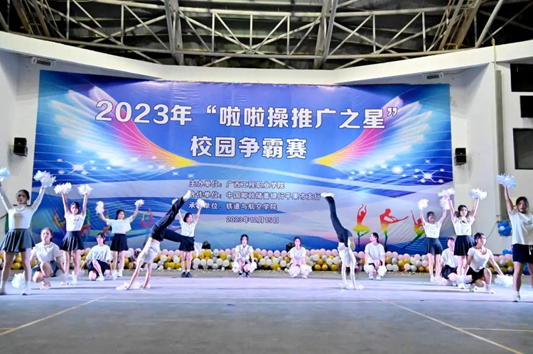 為豐富校園文化生活,展現(xiàn)學(xué)生蓬勃向上的精神風(fēng)貌和青春活力,12月15日,2023年“啦啦操推廣之星”校園爭霸賽在學(xué)校體育館舉行,比賽由廣西工程職業(yè)學(xué)院主辦,中國郵政儲(chǔ)蓄銀行平果市支行合作共辦,鐵道與航空學(xué)院承辦。