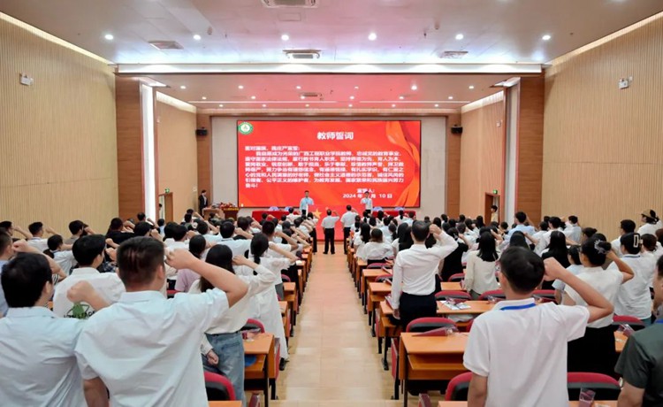 會(huì)上還舉行了重溫教師誓詞儀式,全體教師在黨委副書記黃秋霞的領(lǐng)誓下莊重宣誓。錚錚誓言,是為黨育人、為國(guó)育才的決心,更是為教育發(fā)展、國(guó)家繁榮、民族振興和學(xué)校高質(zhì)量發(fā)展而努力奮斗的信心!