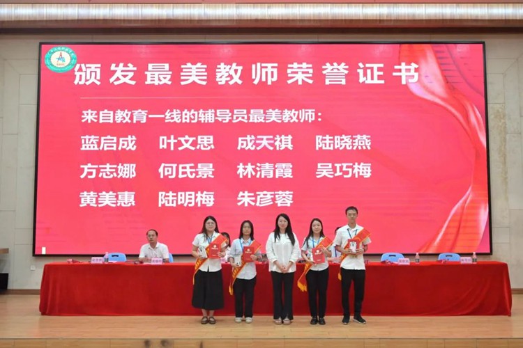 黨委副書記黃秋霞獲得“最美教師”榮譽(yù)稱號(hào)的一線輔導(dǎo)員頒獎(jiǎng)