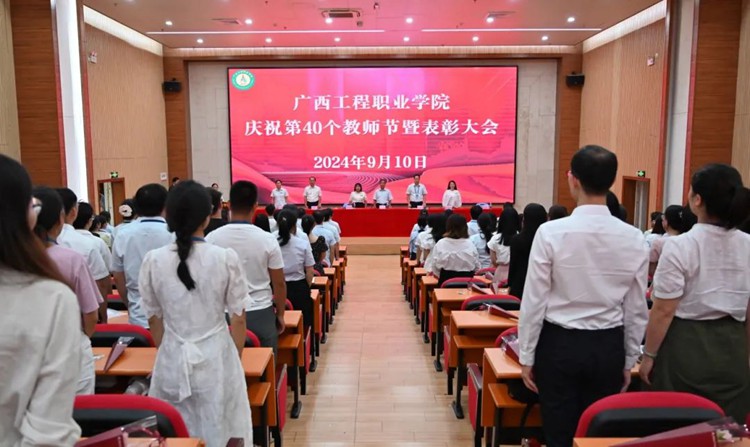 為大力弘揚(yáng)教育家精神,營(yíng)造全校尊師重教濃厚氛圍,激勵(lì)廣大教師和教育工作者落實(shí)立德樹人根本任務(wù),推動(dòng)學(xué)校更高質(zhì)量發(fā)展,9月10日,廣西工程職業(yè)學(xué)院在圖文信息大樓報(bào)告廳召開慶祝第40個(gè)教師節(jié)暨表彰大會(huì)。