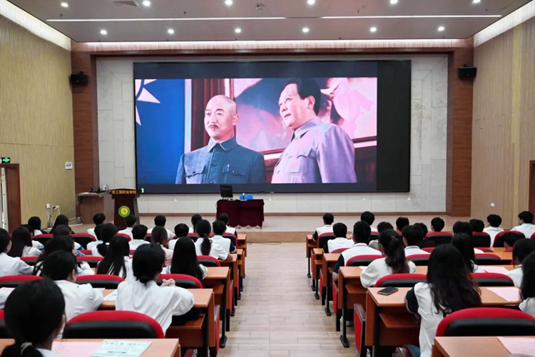 同學(xué)們的目光緊緊追隨著畫面,他們的神情專注而認(rèn)真。每一個(gè)場(chǎng)景、每一句臺(tái)詞,都仿佛帶著他們穿越時(shí)空,回到那個(gè)波瀾壯闊的革命年代。他們看到了先輩們?yōu)榱藝?guó)家的獨(dú)立和民族的解放,不惜拋頭顱、灑熱血,用生命譜寫壯麗的史詩(shī)。