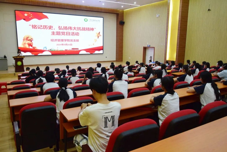9月26日,經(jīng)濟(jì)管理學(xué)院舉行“銘記歷史,弘揚(yáng)偉大抗戰(zhàn)精神”主題黨日活動(dòng),組織觀看歷史題材影片《東京審判》,通過(guò)活動(dòng)的開展銘記歷史,弘揚(yáng)偉大抗戰(zhàn)精神,激發(fā)學(xué)生的愛國(guó)主義情懷,強(qiáng)化學(xué)生肩負(fù)民族復(fù)興重任的責(zé)任感與使命感。