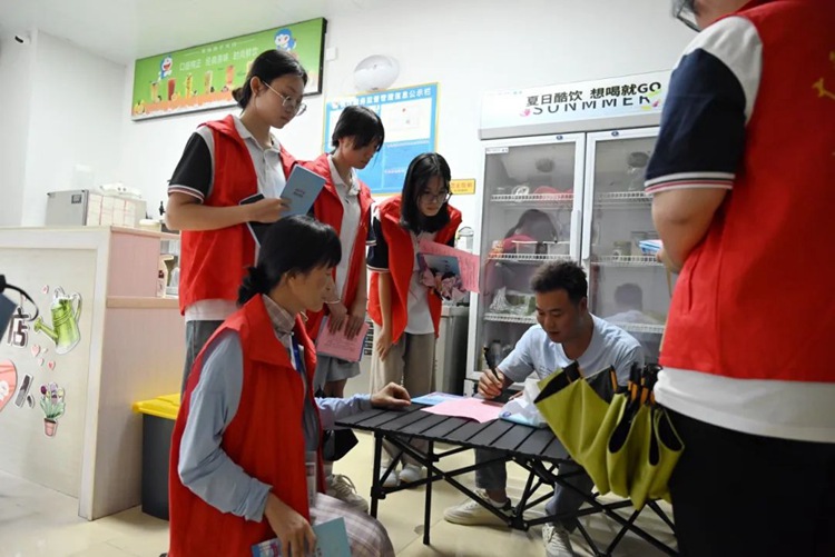 活動中,學校師生志愿者到網(wǎng)格區(qū)居民家中、商鋪中向居民發(fā)放文明城市創(chuàng)建知識手冊等宣傳材料,并耐心解答居民提出的問題,引導廣大市民從自身做起,從小事做起,共同為文明城市建設貢獻力量。