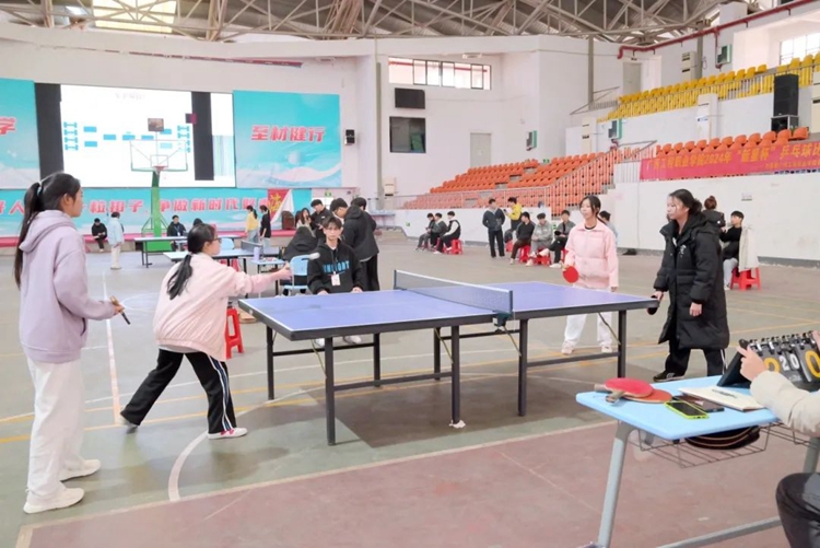 為豐富同學(xué)們的課余文化生活,培養(yǎng)學(xué)生的團(tuán)隊(duì)精神和競爭意識,傳承乒乓文化,發(fā)揚(yáng)國球精神,2024年12月14日至15日,學(xué)校在體育館舉辦“新星杯”乒乓球比賽。賽項(xiàng)涵蓋女生雙打和男生雙打兩大類別。