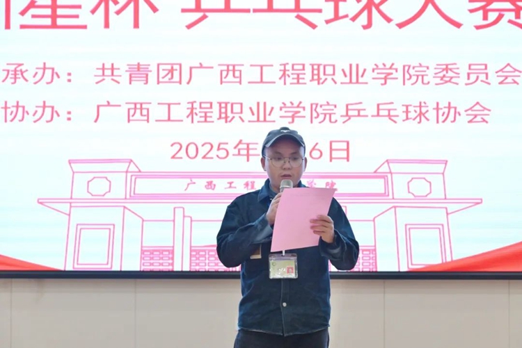 圖為乒乓球協(xié)會指導(dǎo)老師韋遠(yuǎn)安老師宣布獲獎(jiǎng)名單