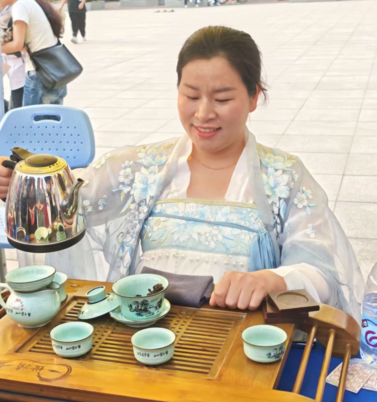學(xué)校彭麗文老師展示茶藝,以茶敬友、以禮傳情