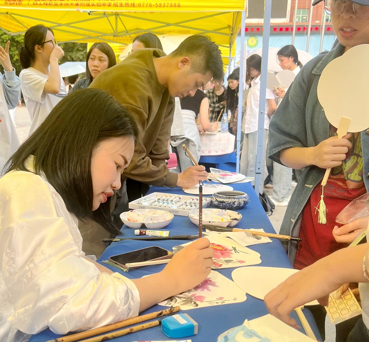 學(xué)校陳麗媛老師介紹并指導(dǎo)漆扇制作工藝