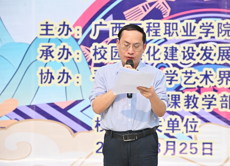 黨委委員、組織部部長(zhǎng)、副校長(zhǎng)蔣茂麗宣布廣西工程職業(yè)學(xué)院2025年“廣西三月三·奏響非遺韻”非遺文化進(jìn)校園暨“廣西三月三”民族團(tuán)結(jié)進(jìn)步宣傳月活動(dòng)正式開(kāi)始