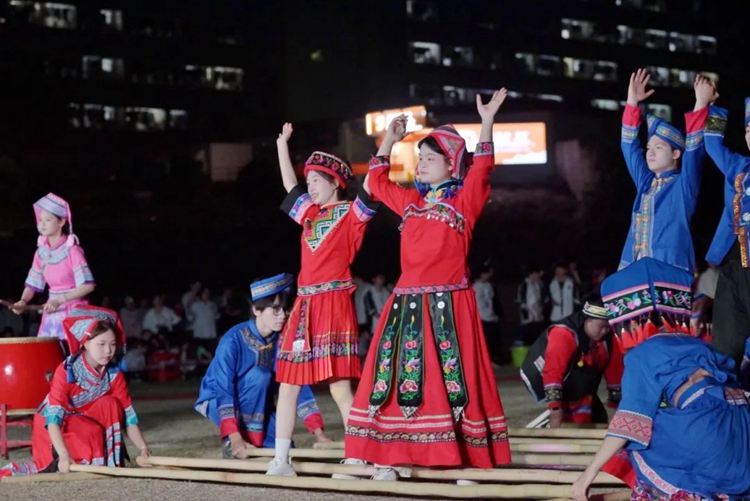 本次篝火晚會精心編排多個精彩節(jié)目,涵蓋山歌串燒、民族舞蹈、非遺表演等多種形式。從 “山歌繞梁·余韻未歇” 的悠揚歌聲,到 “三月春風(fēng)拂人間·民族文化永傳承” 的多彩演繹,再到 “火焰不息·狂歡不止” 的熱烈氛圍,將全方位呈現(xiàn)民族文化魅力,為師生們帶來一場令人驚艷的視聽盛宴。