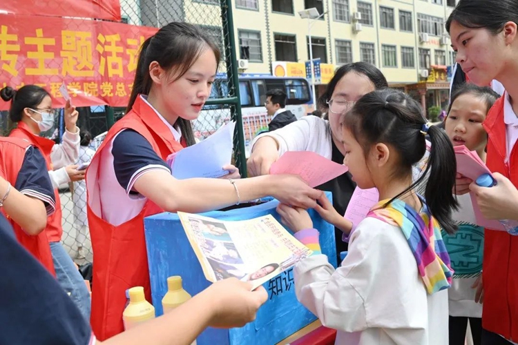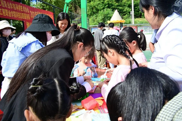 當(dāng)天,學(xué)校黨委選派師生黨員志愿者,組建文化、技術(shù)和知識科普宣傳服務(wù)隊,利用技能專長為社區(qū)居民提供豐富多樣的志愿服務(wù)。文化服務(wù)隊輔導(dǎo)社區(qū)兒童學(xué)手工剪紙、書畫掛歷、繪畫和書法等知識,引導(dǎo)社區(qū)兒童集體認真繪制民族團結(jié)題材美術(shù)作品。技能服務(wù)隊幫助社區(qū)居民免費維修家電和美容美發(fā),幫助社區(qū)居民解決日常問題,用所學(xué)技能惠及民眾所需。知識科普宣傳服務(wù)隊則開展禁毒防艾知識宣傳及科普服務(wù)進社區(qū)活動,為社區(qū)群眾答疑解惑,普及科學(xué)知識。