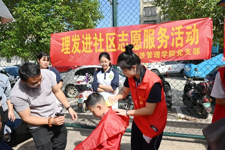 經(jīng)濟管理學(xué)院黨支部開展免費理發(fā)服務(wù)活動,我們的志愿者與居民親切交談,耐心傾聽每位居民的理發(fā)要求,精準(zhǔn)提供剪發(fā)服務(wù),讓他們享受到了貼心服務(wù)和家人般的溫暖。