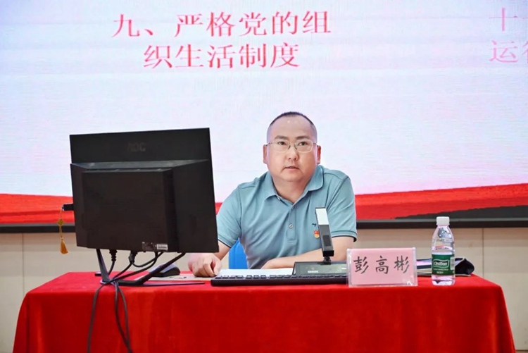 圖為紀(jì)委書記、副校長彭高彬作題為《錘煉黨性,廉潔自律》的專題培訓(xùn)