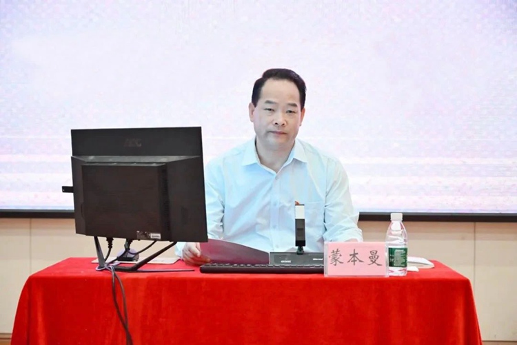圖為黨委書記、政府督導(dǎo)專員蒙本曼作題為《常學(xué)常新,常悟常進(jìn)》的專題培訓(xùn)
