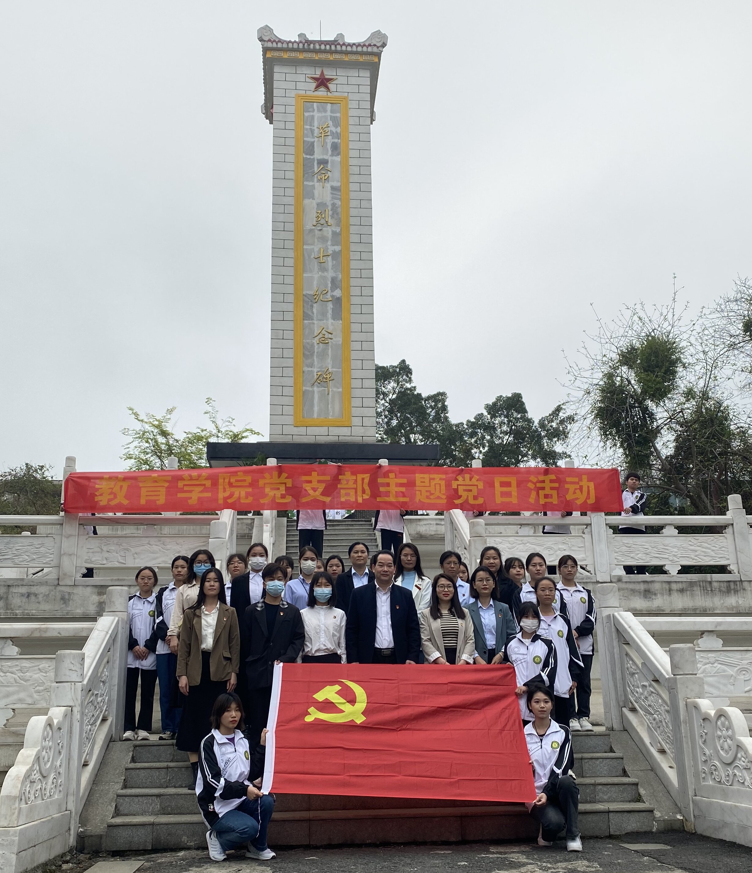 桃花雨紅英雄淚,碧海丹霞志士心。今日神州看奮起,陵園千古慰忠魂。習近平總書記強調(diào):“一個有希望的民族不能沒有英雄,一個有前途的國家不能沒有先鋒”。英雄烈士是民族的脊梁、時代的先鋒,英烈事跡和精神是中華民族的共同歷史記憶和寶貴精神財富。在清明來臨之際,為了緬懷革命先烈,激發(fā)同學(xué)們的愛國主義情懷。2023年4月1日上午,我院黨支部書記梁善雅、副書記盧燕梅、梁鳳琴院長等32名師生黨員、發(fā)展對象和入黨積極分子參加學(xué)校舉辦的“緬懷革命先烈,弘揚民族精神”暨重溫入黨誓詞主題黨日活動。