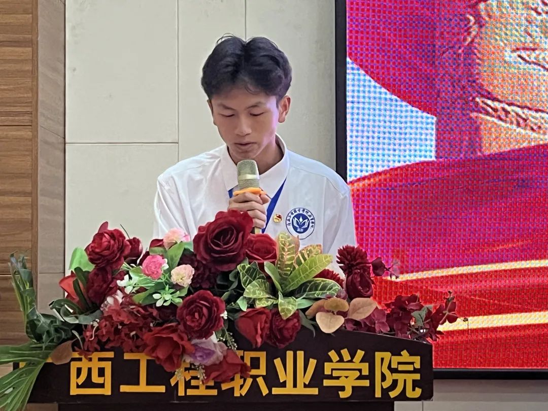 (學(xué)生會新一屆主席團成員韋冬偉宣讀倡議書)