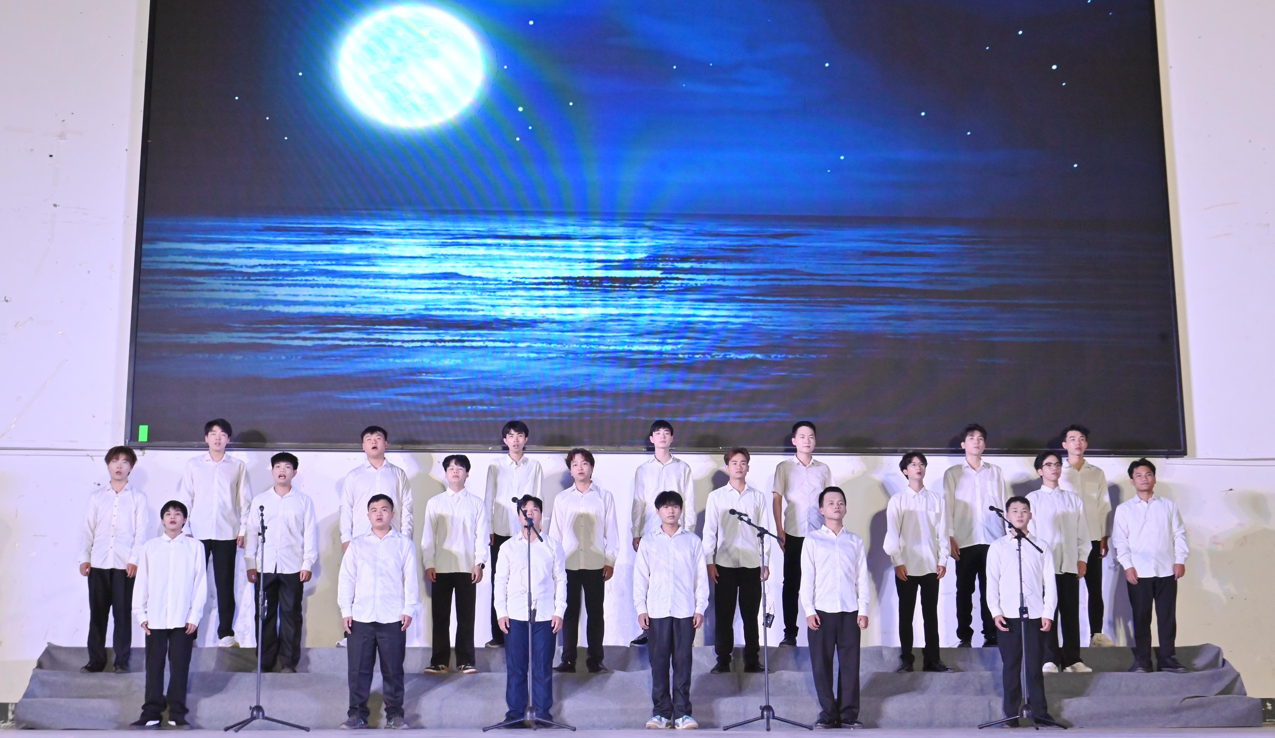 此次專業(yè)匯報演出以獨唱、重唱、合唱、歌舞情景劇等形式展示,全部由2021級藝術(shù)教育專業(yè)(音樂方向)75位同學在何瑞禎、覃小密、黃雯靖、黃娜四位老師的指導(dǎo)下完成。策劃、排練、演出歷時三個多月,本場匯報演出旨在2021級藝術(shù)教育專業(yè)(音樂方向)的同學兩年學習成果的凝聚,演出以歡快的青春流行曲《那個遠方》開場,點明主題,拉開帷幕。