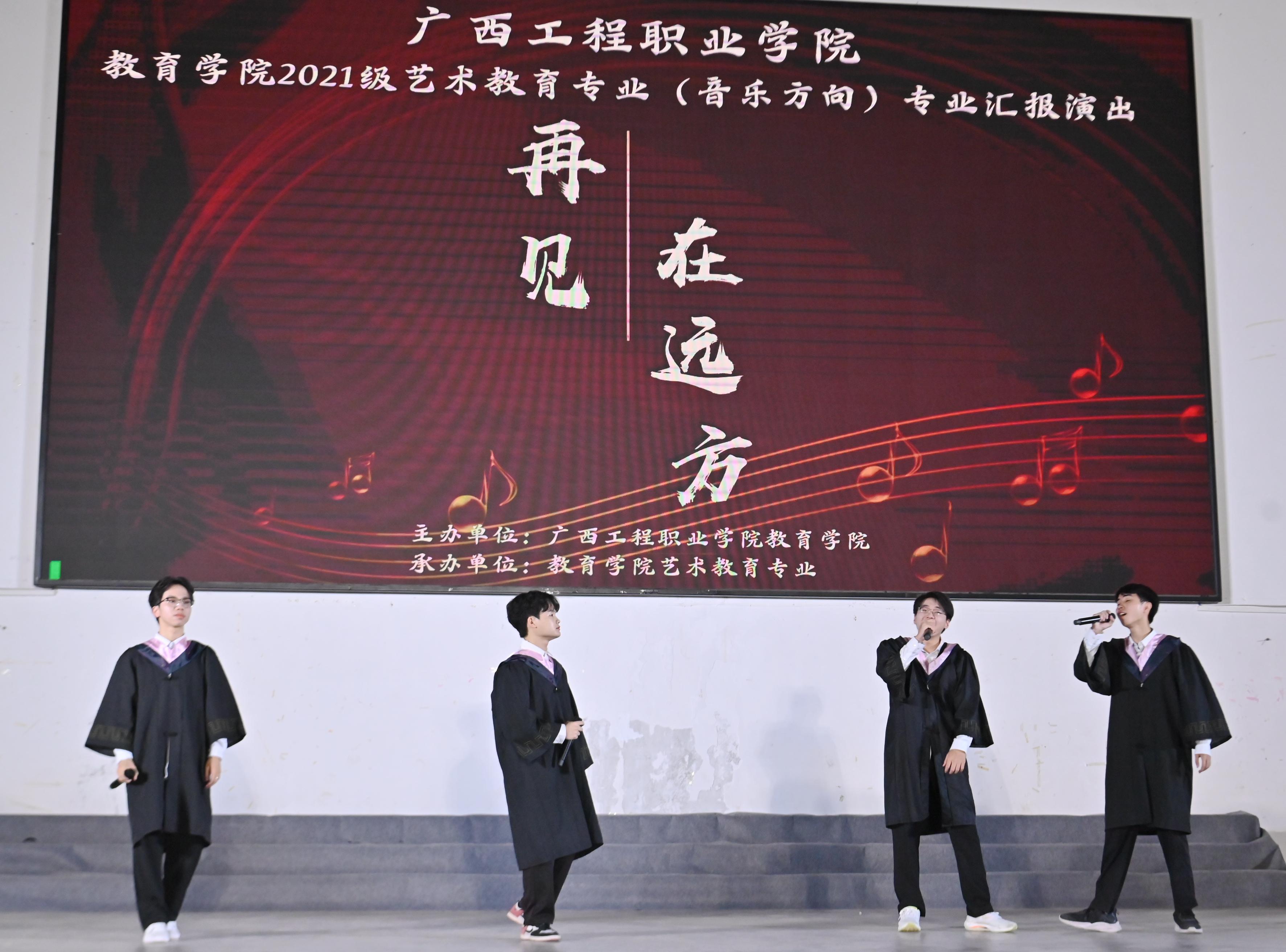 教育學院2021級藝術(shù)教育專業(yè)(音樂方向)“再見·在遠方”專業(yè)匯報演出不僅展示教育學院學子的藝術(shù)風采,更是提高了學生們舞臺表演能力。同時也為藝術(shù)教育專業(yè)(音樂方向)提供了一個展現(xiàn)班級風采的平臺,進一步弘揚校園文化,活躍藝術(shù)氛圍,彰顯藝術(shù)風采。(通訊員:何瑞禎)