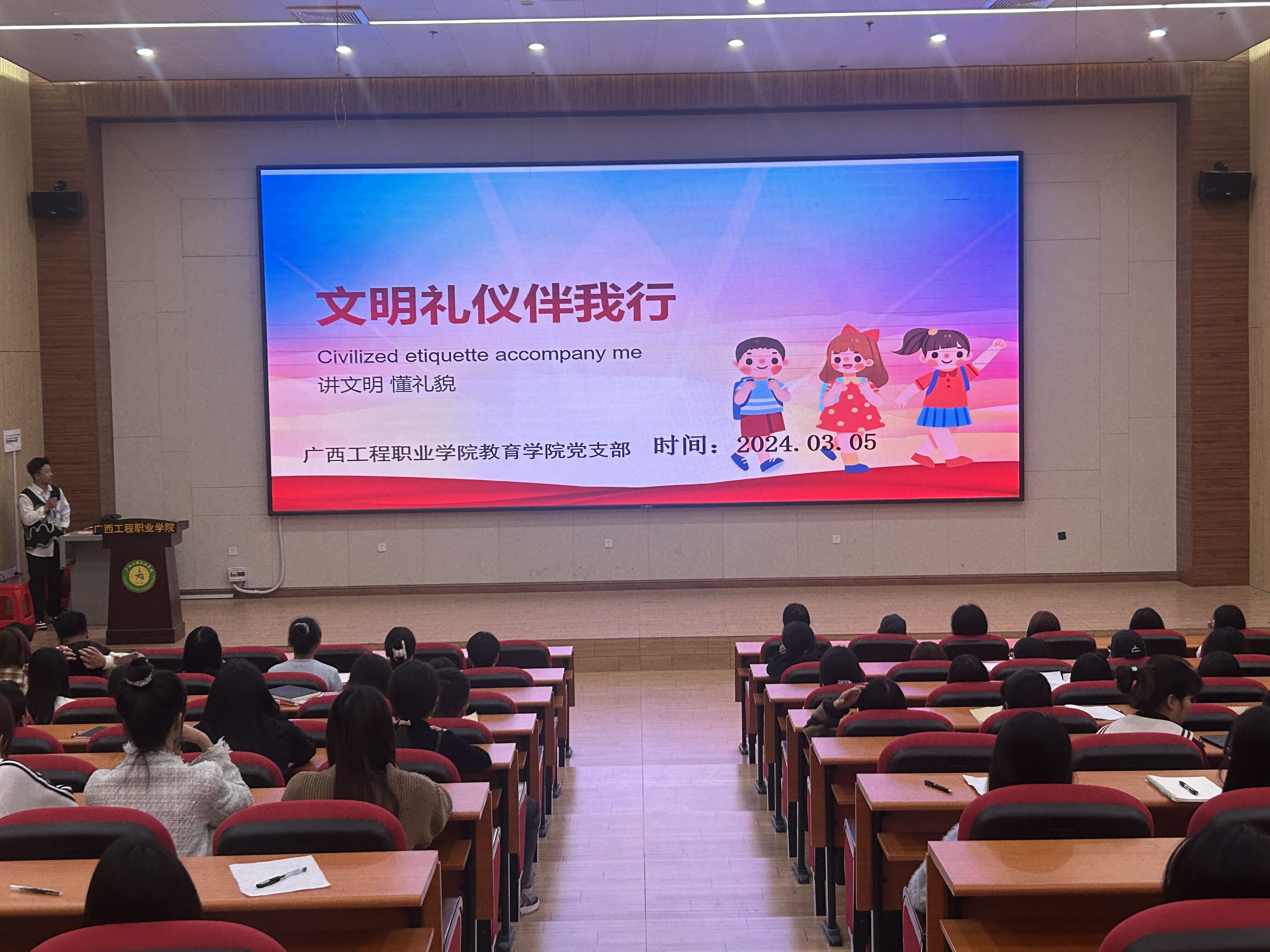 統(tǒng)戰(zhàn)委員王冬、組織委員葉健芳就文明禮儀進行講解,提醒同學(xué)們要不斷提高自身素質(zhì),用禮儀規(guī)范自身,在生活中自覺養(yǎng)成良好的文明習慣,努力做優(yōu)雅大方、豁達樂觀、明禮誠信的新時代青年。
