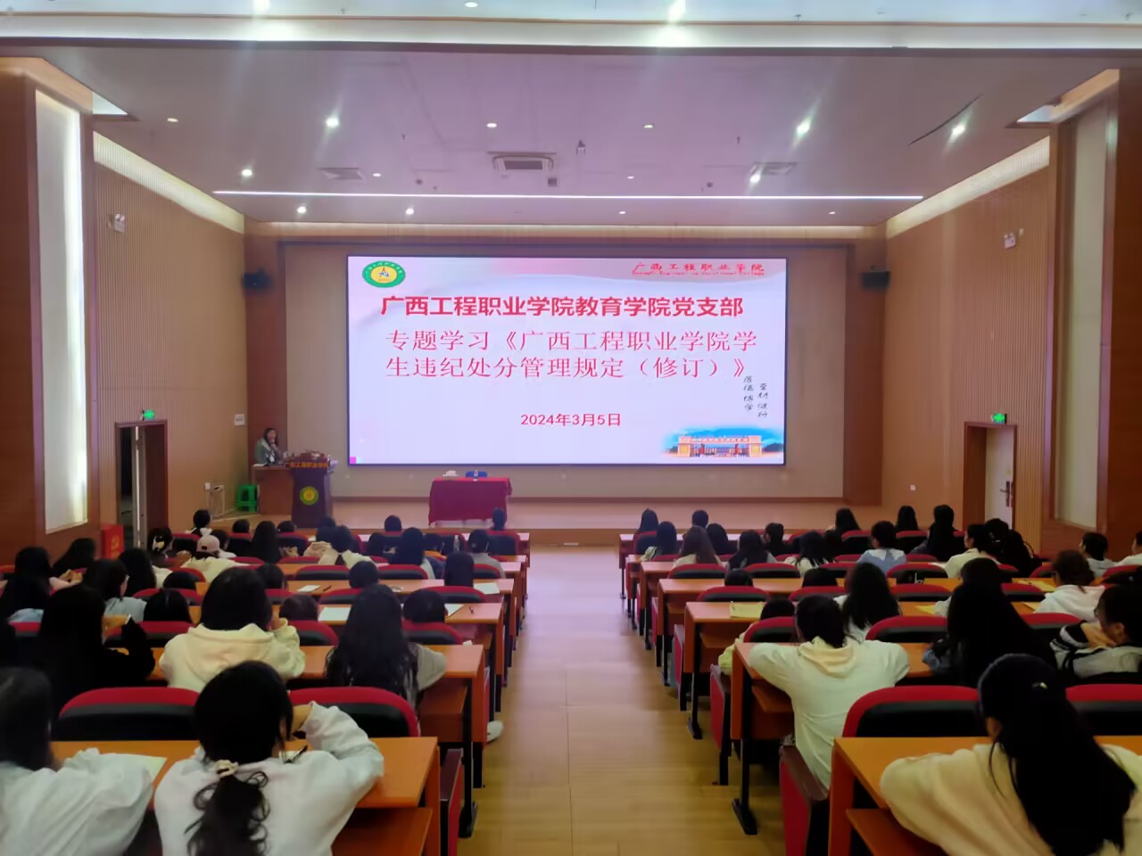 會上,盧燕梅副書記對《廣西工程職業(yè)學(xué)院學(xué)生違紀處分管理規(guī)定(修訂)》進行深度解讀,強調(diào)了遵守校規(guī)校紀的重要性,要求同學(xué)們認真學(xué)習相關(guān)制度規(guī)定,自覺遵守校紀校規(guī),做一名遵紀守法的大學(xué)生。