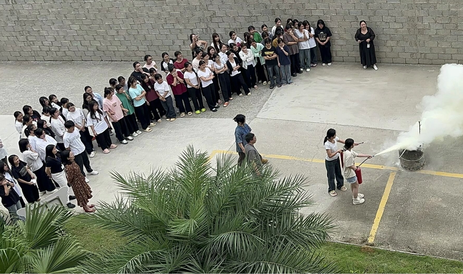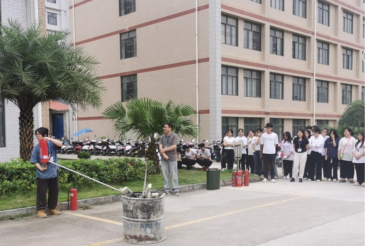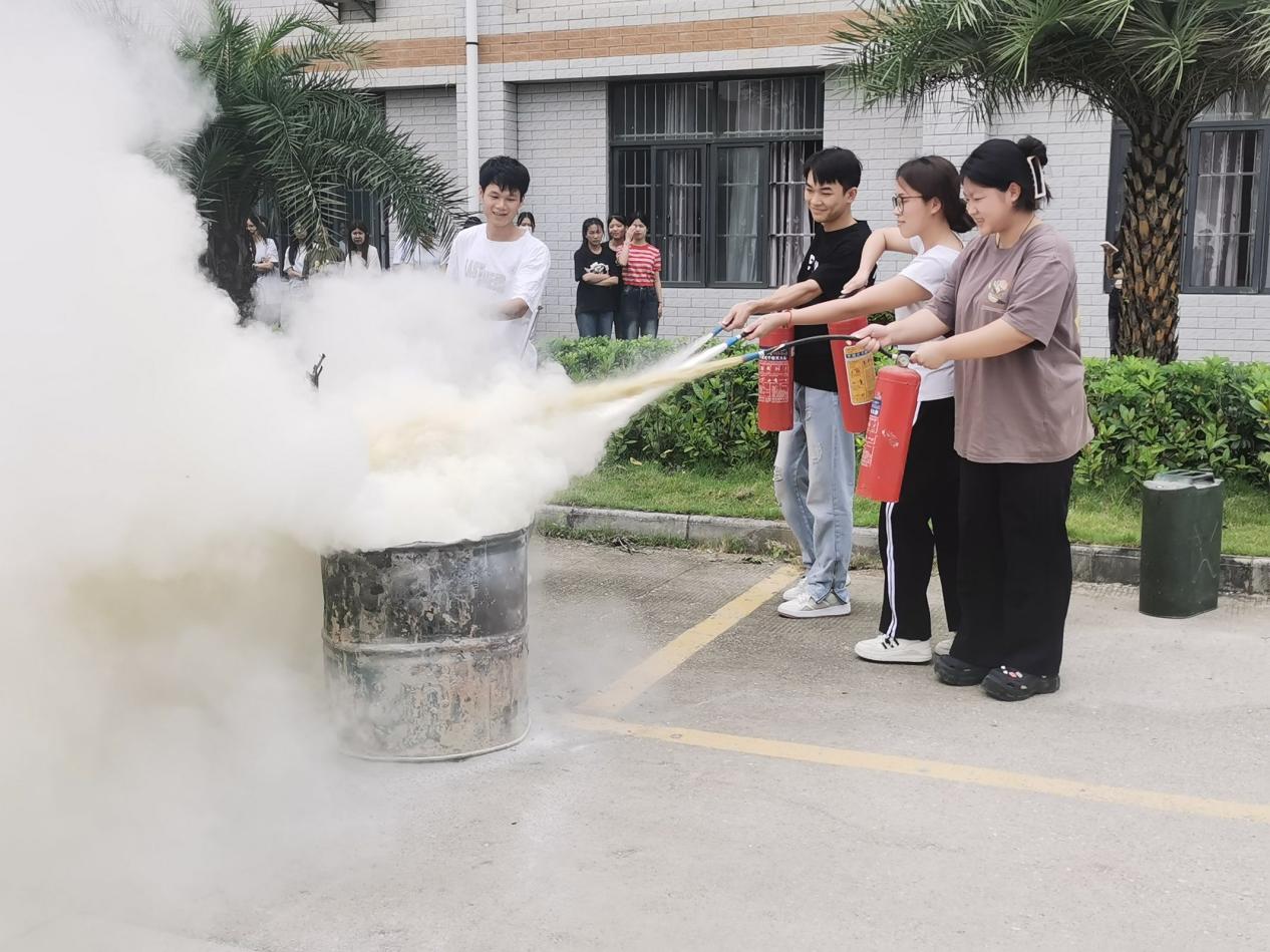 (學(xué)生進(jìn)行滅火器使用演練)