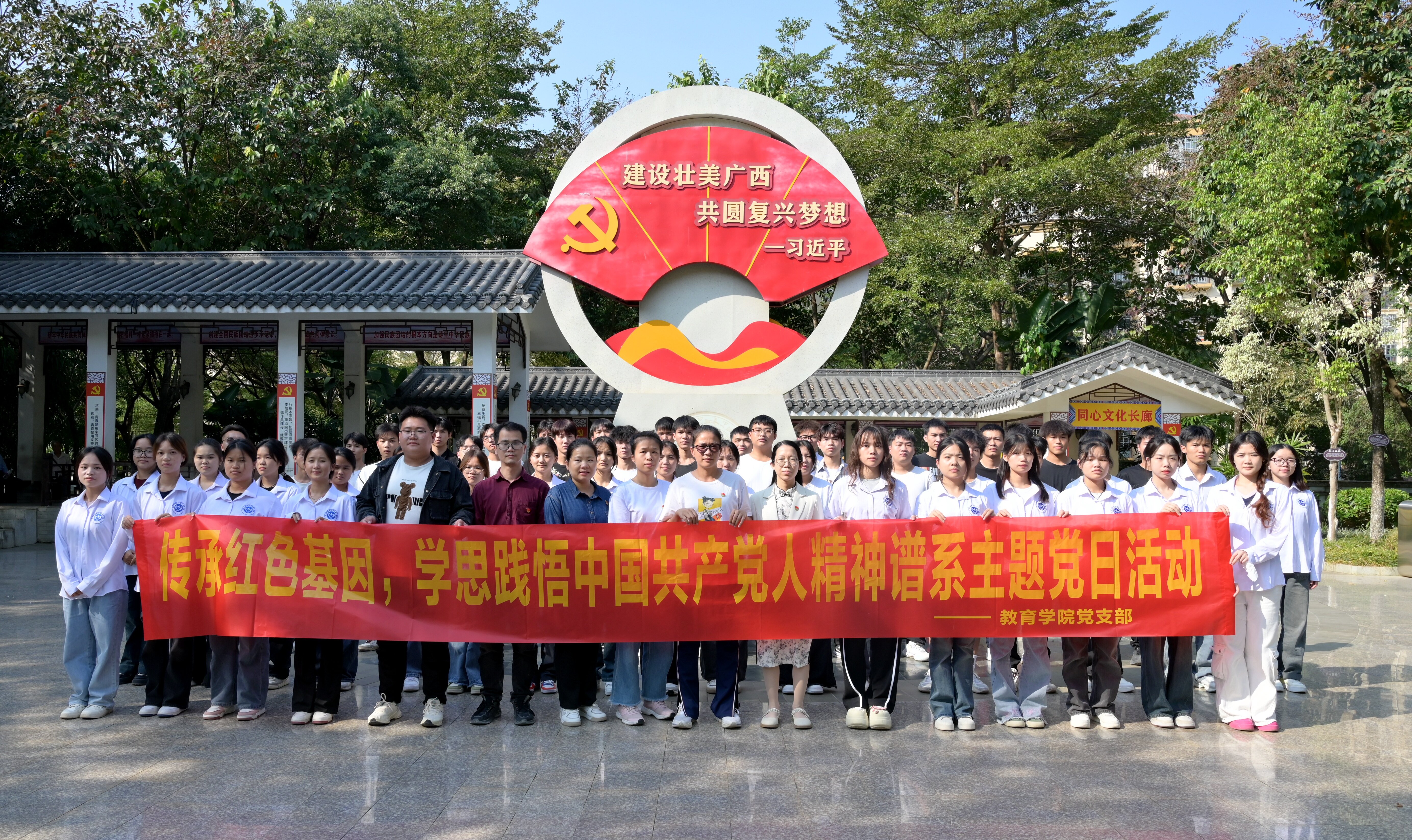 2024年11月8日下午3點,教育學院黨支部組織全體黨員、發(fā)展對象及入黨積極分子到平果市鄧公山紅色主題公園開展主題黨日活動,本次主題黨日活動的主題是傳承紅色基因,學思踐悟中國共產(chǎn)黨人精神譜系。
