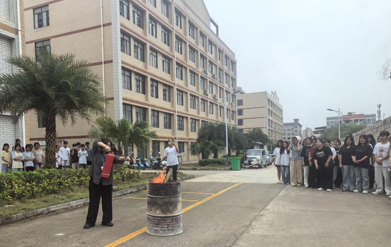 (圖為學(xué)生進(jìn)行滅火器使用演練)