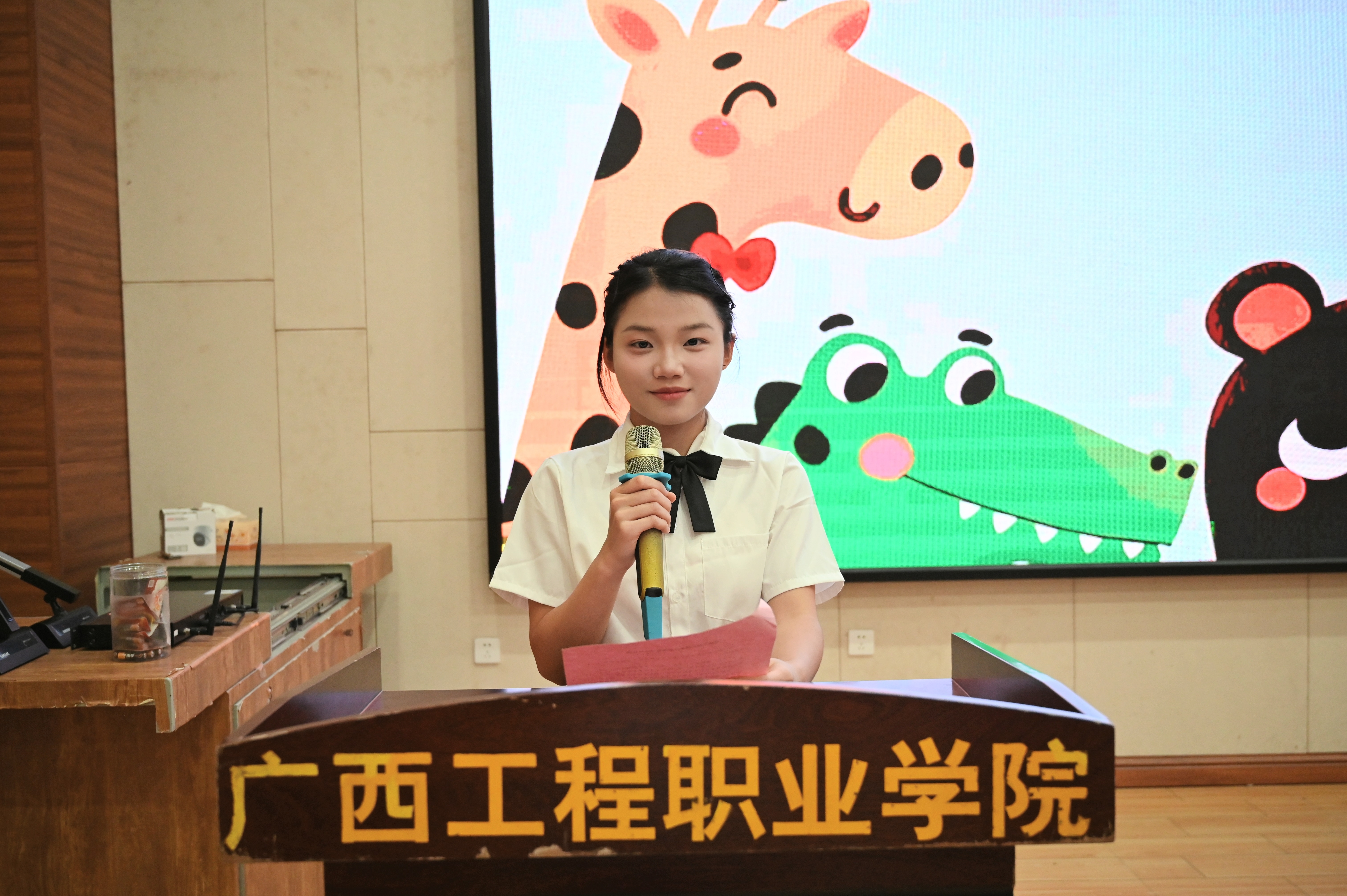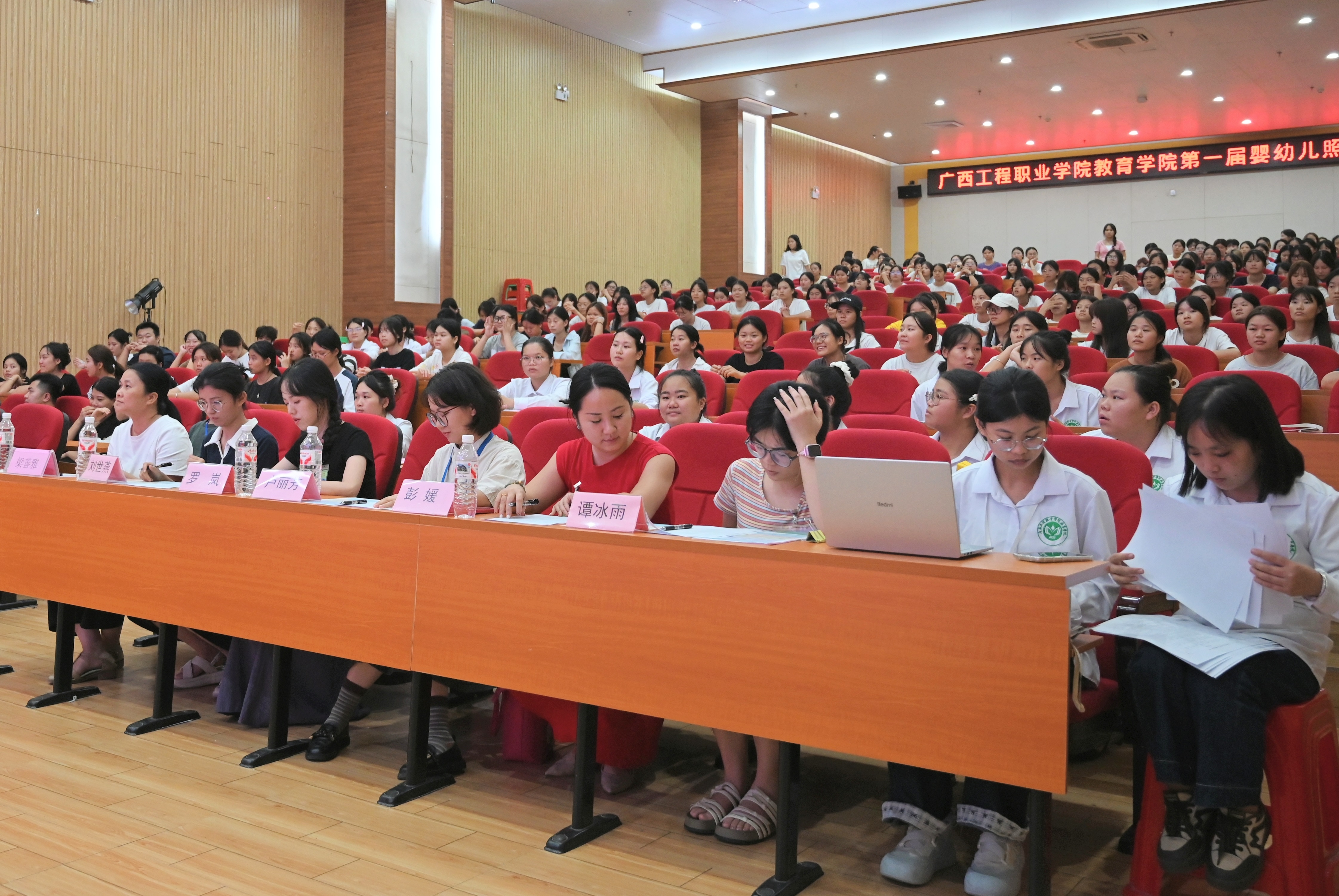 校長助理梁善雅、教育學院院長胡星萍、黨支部副書記楊小櫻、學生科長佴蕊、辦公室主任雷紅出席比賽現(xiàn)場,全體專任教師、輔導(dǎo)員觀看比賽。