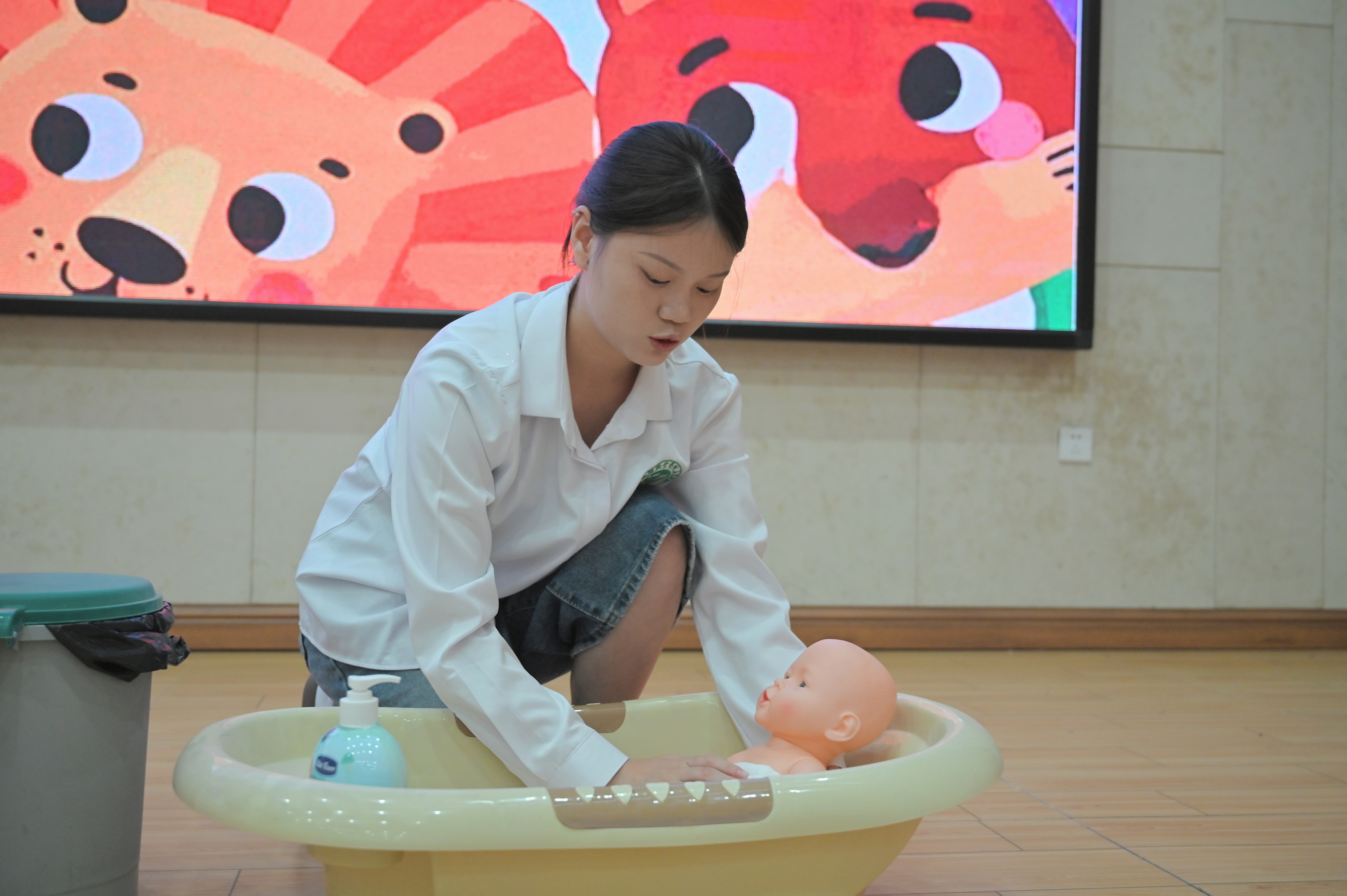 以實踐為筆,繪就成長答卷。同學們展示嬰幼兒沐浴,更換紙尿褲及臂部護理,嬰幼兒撫觸,在一次次動手操作中,把理論知識轉(zhuǎn)化為嫻熟技能,為未來職業(yè)發(fā)展與家庭生活筑牢基礎(chǔ),展現(xiàn)新時代學子的擔當與溫度。他們用細膩的視角捕捉孩子的每一個互動信號,以精準、及時的回應(yīng)守護游戲中的探索樂趣。