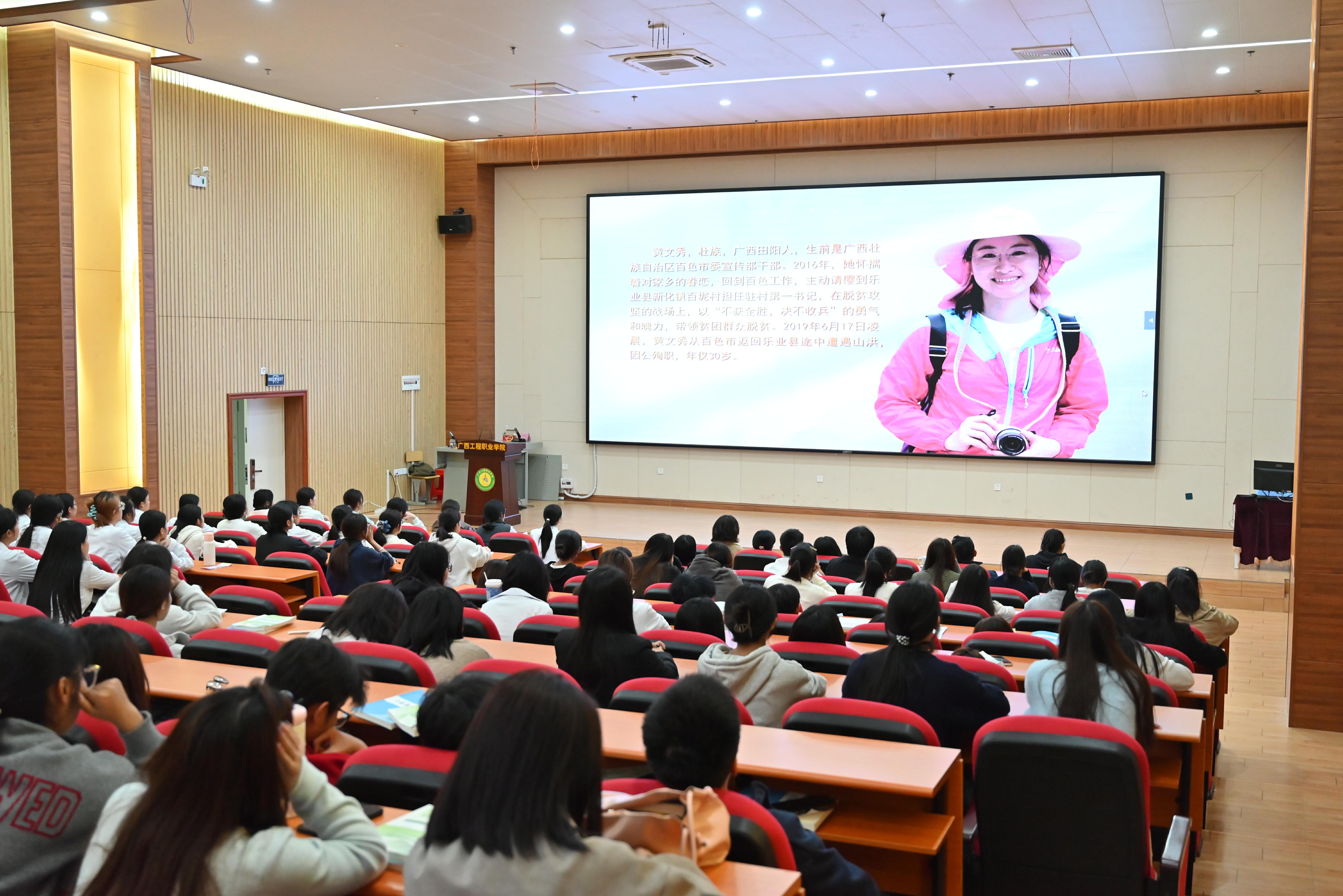 為深入學(xué)習(xí)貫徹黨的精神,傳承榜樣力量,激發(fā)黨員使命擔(dān)當(dāng),2025年11月24日,廣西工程職業(yè)學(xué)院教育學(xué)院黨支部在圖文信息大樓三樓會(huì)議室開展《課本里面的黃文秀》觀影主題黨日活動(dòng)。支部全體黨員、發(fā)展對(duì)象及入黨積極分子共同參與,在觀影中感悟初心使命,在感動(dòng)中汲取奮進(jìn)力量。